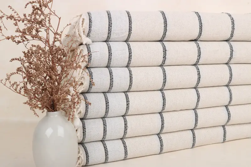 Wedding Favor Organik Türk Pamuğu Açık Gri Çizgili Havlu, 20x40 İnç