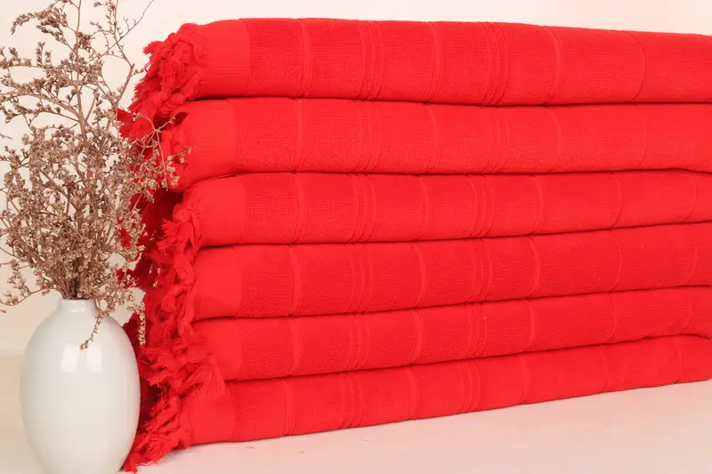 Düğün Hediyesi Kırmızı Çizgili Pamuklu El Havlusu, 18x40 İnç