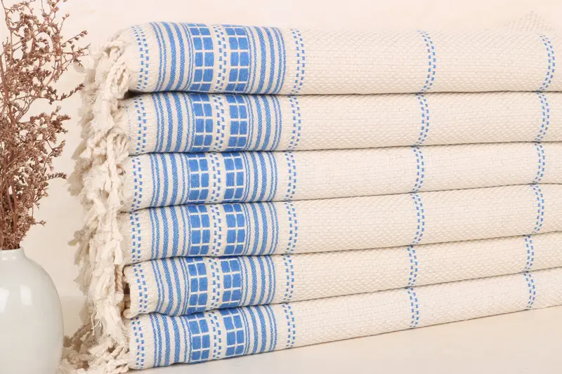 Düğün Hediyesi Keten Çay Havlusu Petrol Mavi Çizgili 20x40 İnç
