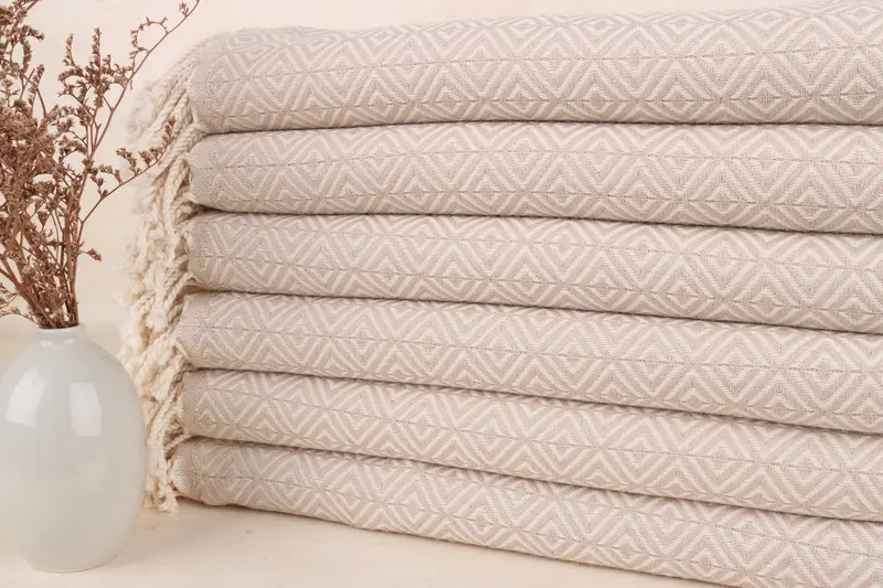 Bu plaj havlusu el tezgahlarında titizlikle dokunarak baklava desenli şık bir tasarım ortaya çıkıyor. Havlunun boyutları ve ağırlığı, hafifliğine, yerden tasarruf etmesine ve çabuk kurumasına ...