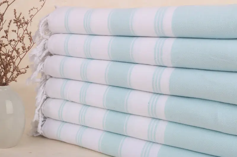Türk Plaj Havlusu, olağanüstü yumuşaklık, dayanıklılık ve emicilik sağlayan %100 organik Türk pamuğu elyaf bileşimi ile karakterize edilir. 310 gram ağırlığında ve 100x180 cm (40x71 inç) ölçülerinde olan havlu, hafif ama sağlam bir seçenek sunuyor. El dokuma işlemi nedeniyle ölçülerde 2,5 cm'ye kadar ufak farklılıklar olabilir.