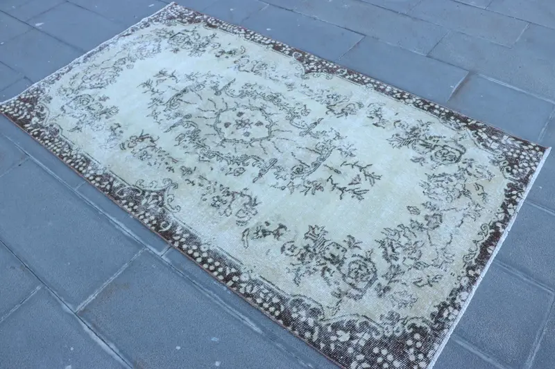store image1.6x3.1 ft El yapımı Türk Oryantal Halı, Vintage Bej Kahverengi Yün Halı