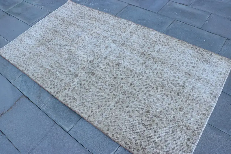 1.6x3.1 ft El yapımı Türk Oryantal Halı, Vintage Bej Kahverengi Yün Halıw****** - 14/09/2025