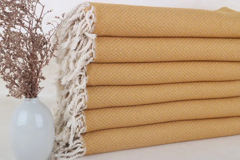 Türk Plaj Havlusu Hardal Geometrik Organik Pamuk, 38x63 İnç