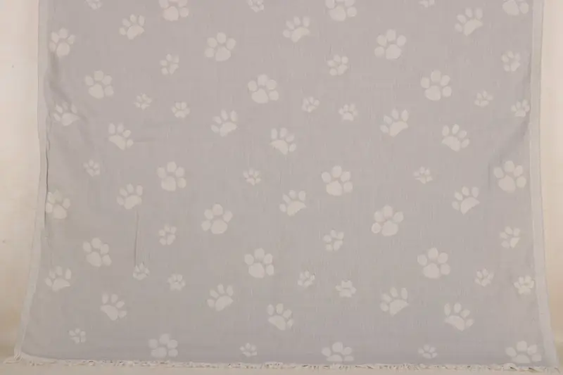 Kişiye Özel Türk Plaj Havlusu Açık Gri Paw Tasarım, 36x71 İnç