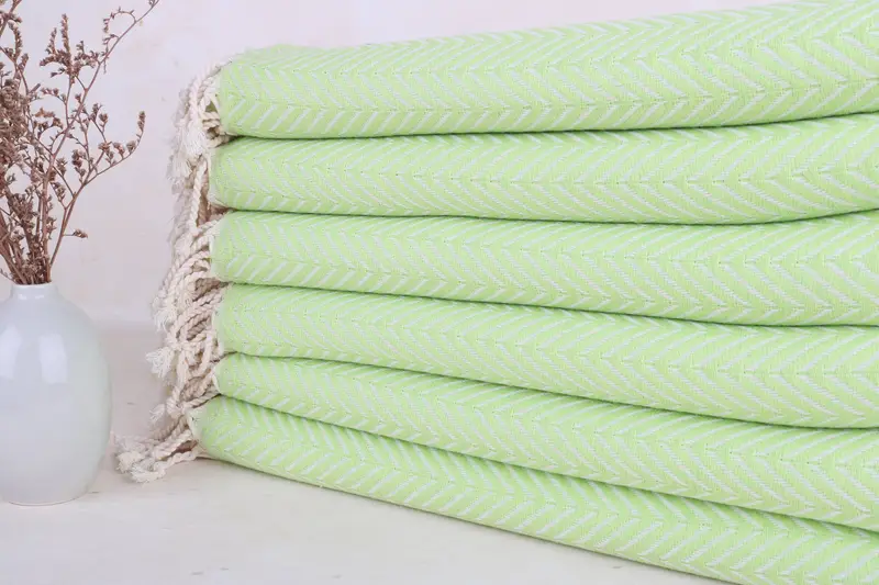 Fıstık Yeşili Chevron Havlu, 40x71 İnç, %100 Organik Pamuk