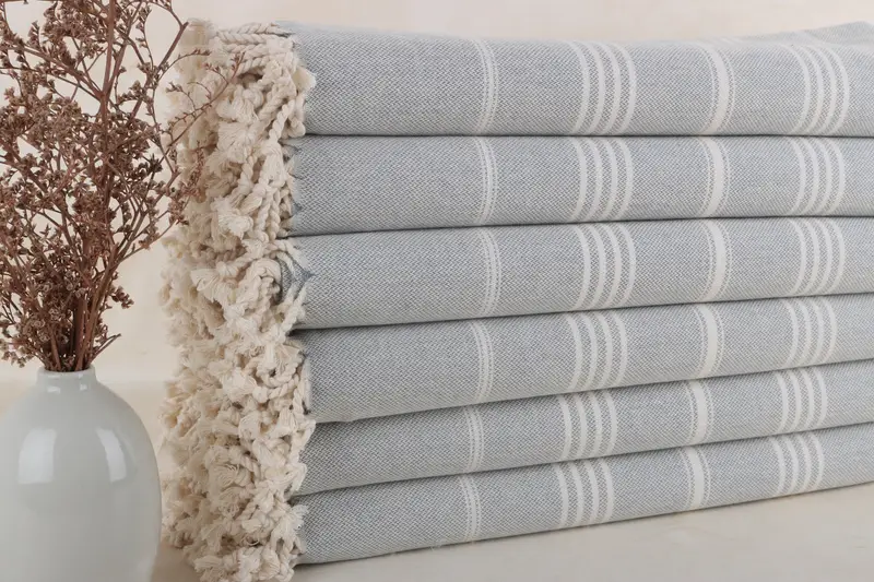 Kişiye Özel Türk Plaj Havlusu Gri Çizgili, Organik Pamuk, 40x67 İnç