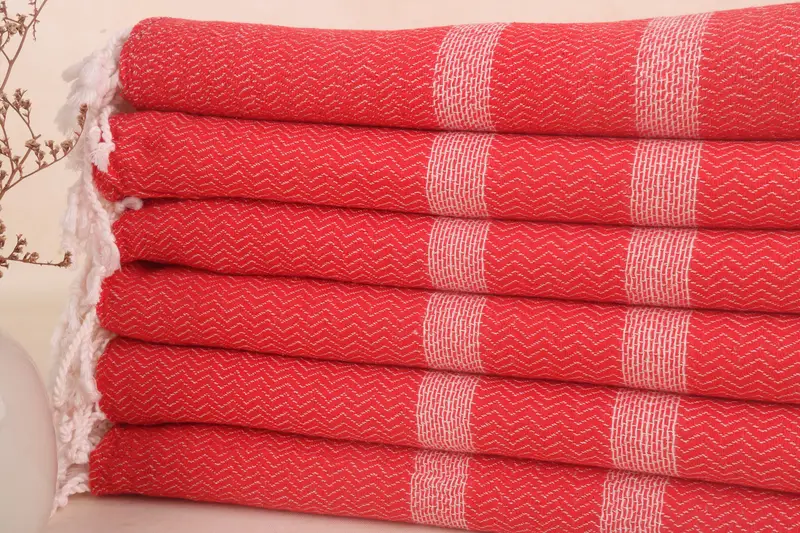Türk Plaj Havlusu Kişiye Özel Kırmızı Çizgili, 36x71 İnç