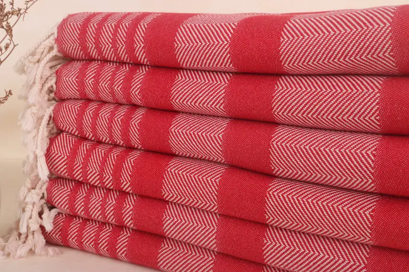 Kişiye Özel Türk Havlusu Kırmızı Şerit, 38x67 İnç, Organik Pamuk