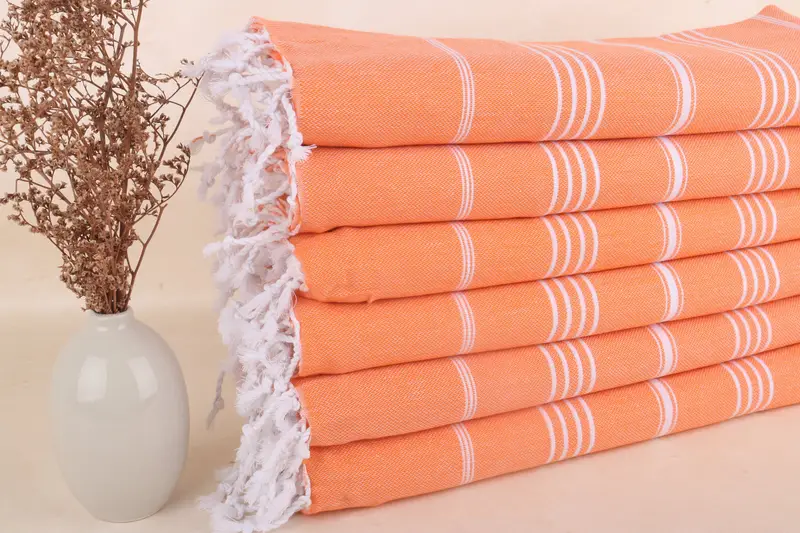 Türk Havlusu Plaj Turuncu Çizgili, Kişiye Özel, 40x71 İnç