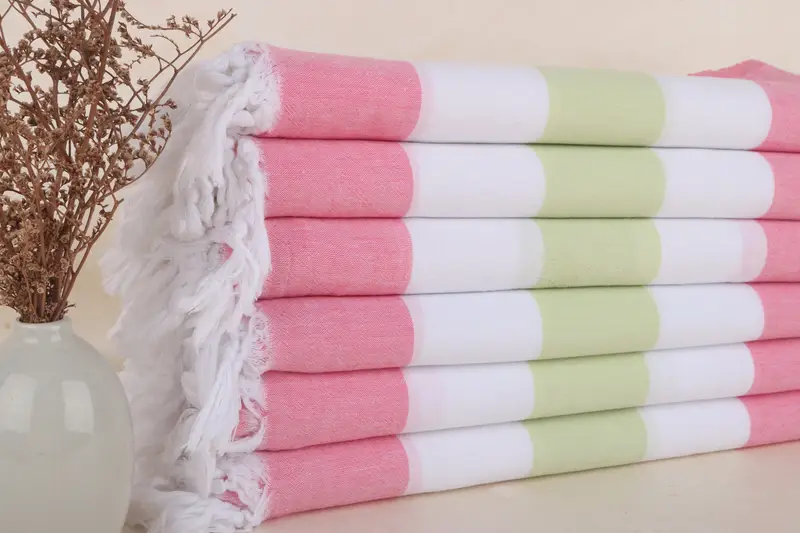 Kişiye Özel Yeşil-Pembe Çizgili Havlu, Türk Pamuğu, 40x71 İnç