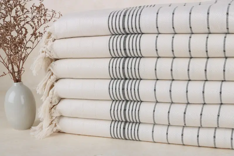 Plaj Havlusu Kişiye Özel Türk Pamuğu Haki Yeşil Çizgili, 40x71 İnç