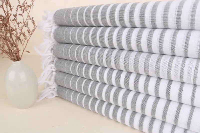 Kişiye Özel Türk Plaj Havlusu Beyaz-Haki Yeşil Çizgili, 40x69 İnç