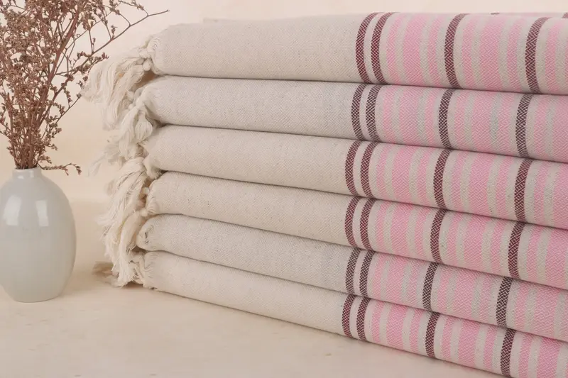 Keten Havlu Pembe-Bordo Bej, 38x71 İnç
