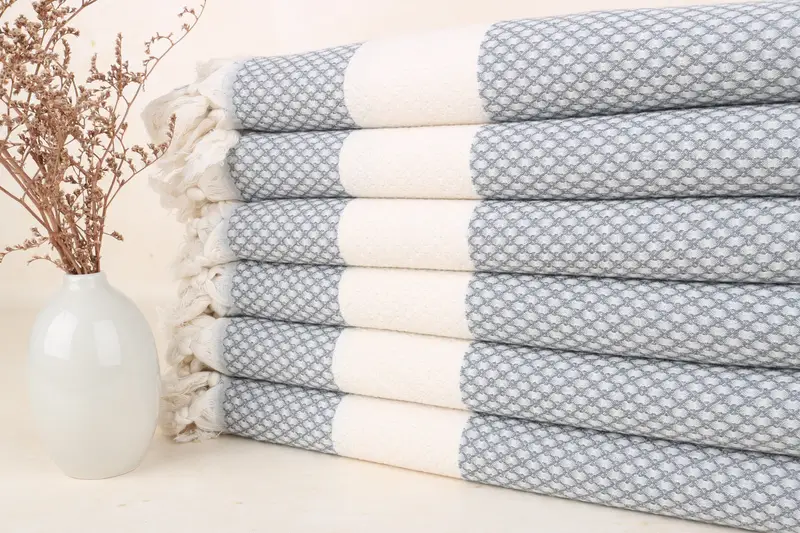 Kişiye Özel Açık Gri Chevron Havlu, 36x67 İnç, Organik Türk Pamuğu