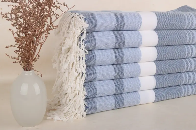 Türk Havlusu Lacivert-Bebek Mavisi Çizgili, Organik Pamuk, 40x71 İnç