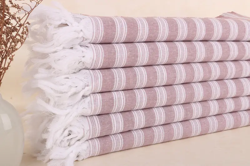 Kişiye Özel Havlu Koyu Tuğla Çizgili 40x71 İnç Türk Pamuk Havlu