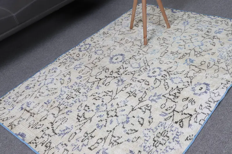 Vintage bir Türk aksanı parçası olan bu halı, 3,6x5,1 ft boyutlarındadır ve yünden üretilmiştir. Ana renk, beyaz vurgularla tamamlanan sakin bir mavidir ve çarpıcı bir hayvan baskısı deseni oluşturur. Her halı benzersizdir ve karmaşık tasarımdaki farklılıklara sahiptir.