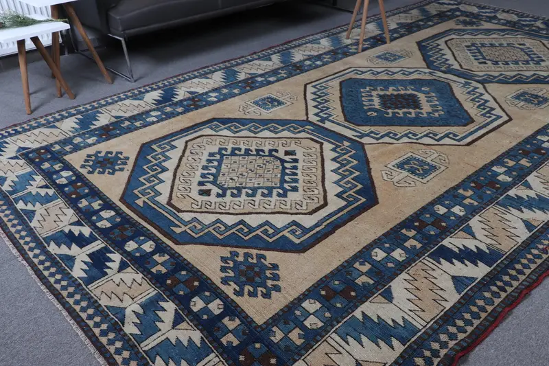 Vintage Halı 7,2x12,6 ft (220x385 cm), Mavi İkat Türk Halısı