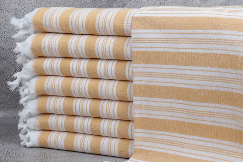 Türk havluları, yumuşak ve emici bir elyaf bileşimi sağlayan organik Türk pamuğunun kullanılmasıyla karakterize edilir. Bu havlular, geleneksel teknikler kullanılarak elde dokunmuştur ve 40x71 inç veya 100x180 santimetre boyutunda ve 2 inç veya 5 santimetreye kadar üretim toleransıyla sonuçlanır. Her bir havlu 124 gram ağırlığındadır ve önceden büzülerek dayanıklılığı artırılmıştır.