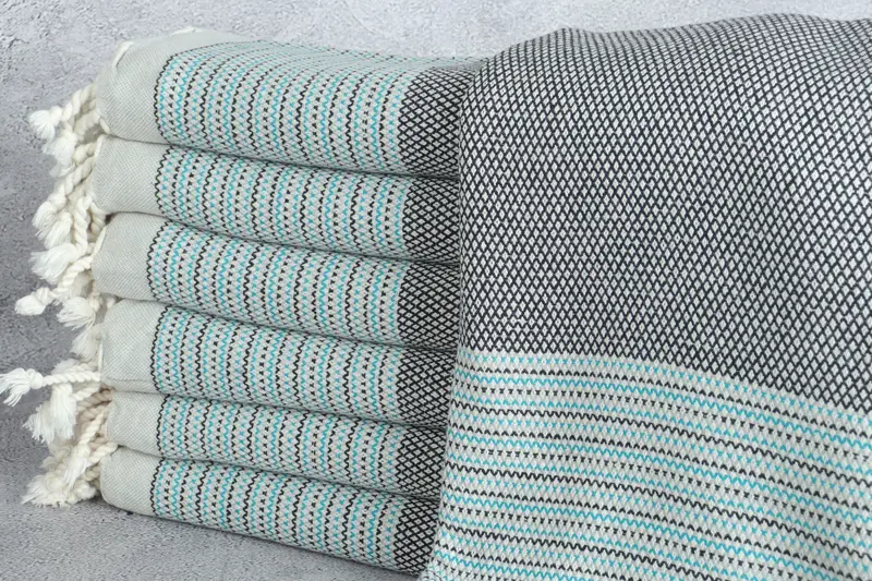 Organik Türk pamuğu dayanıklılık ve olağanüstü emicilik sağlayarak çeşitli ev ihtiyaçlarını karşılar. 40x63 inç veya 100x160 santimetre boyutlarıyla öne çıkan bu havluların ağırlığı 360 gramdır. Elle dokuma işlemi 2 inç veya 5 santimetreye kadar toleransla sonuçlanır.