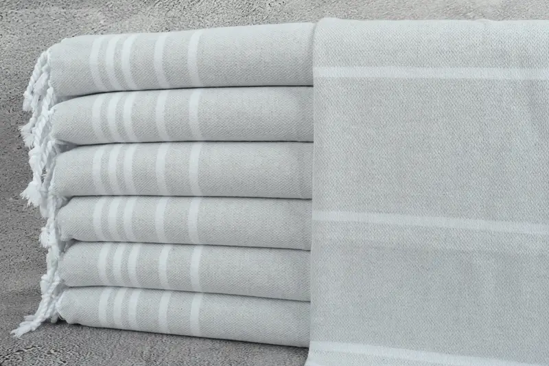 Açık Gri Peşkir olarak tanımlanan bu Türk havlusu, çevre dostu birinci sınıf Türk pamuğundan üretilmiştir. Doğal elyaf bileşimi üstün emicilik ve hafiflik özellikleri sağlar. Çoklu kullanımlar için ideal bir ürün ortaya çıkar.