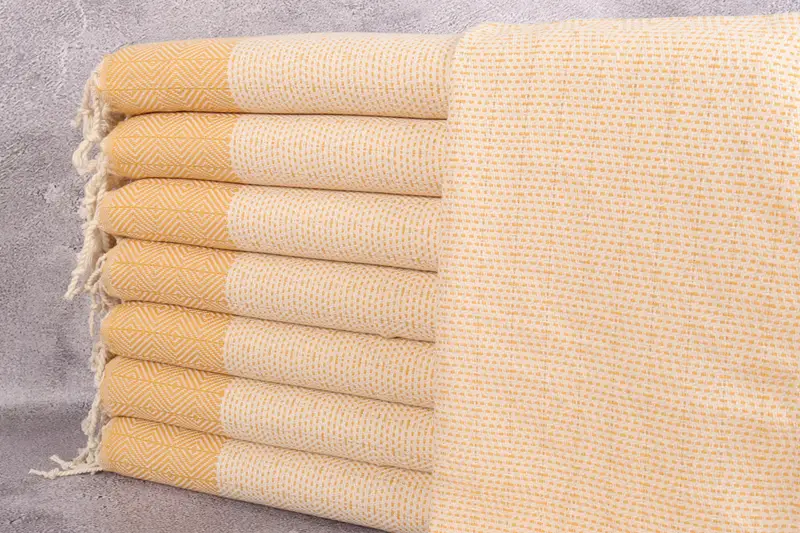 Organik Türk pamuğu ile karakterize edilen Türk havlusu, yüksek emicilik ve çevre dostu olma özelliği sağlar. Her ürün 18x36 inç veya 45x90 santimetre ölçülerinde olup ağırlığı 122 gramdır. Elle dokuma işlemi 2 inç veya 5 santimetreye kadar tolerans sağlar.