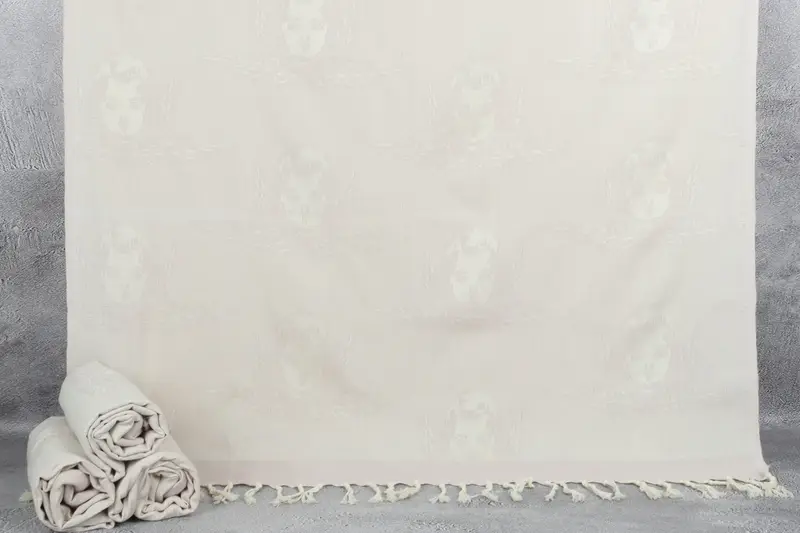 Organik Türk pamuğu ile karakterize edilen lif bileşimine sahip monogram plaj havlusu, yüksek emicilik sağlar. 40x71 inç veya 100x180 santimetre ölçülerindeki, 200 gram ağırlığındaki plaj havlusu, geleneksel el dokumacılığıyla üretiliyor ve 2,5 santimetreye kadar toleranslara izin veriliyor. Nakış yoluyla kişiselleştirme mümkündür ve havlular, gelecekte herhangi bir çekmeyi önlemek için önceden daraltılmıştır.