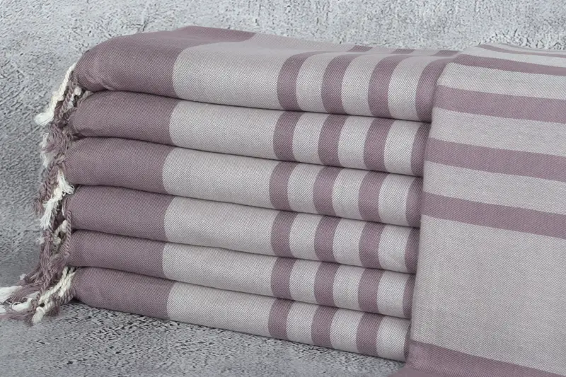 Düz dokuma teknikleriyle karakterize edilen organik Türk pamuğu, yüksek emicilik ve çok yönlülük sağlar. 36x67 inç veya 90x170 santimetre ölçülerinde ve 5 cm'ye kadar toleranslı olan bu havluların ağırlığı 200 gramdır. El dokuması hafif boyutsal farklılıklara neden olur.