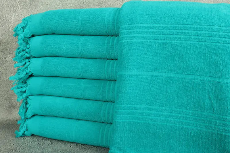 Plaj havluları ve Türk battaniyeleri, üstün yumuşaklık ve dayanıklılık sağlayan ÇEVRE DOSTU Premium Türk Pamuğundan yapılmıştır. 36x71 inç veya 90x180 santimetre boyutlarıyla öne çıkan bu el dokuması ürünlerin ağırlığı 400 gram olup, dokuma tekniklerinden dolayı 2" veya 5cm arasında ufak değişiklikler olabilir.