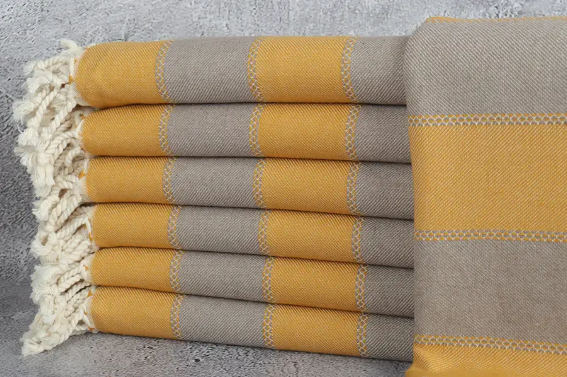 Türk havlusu, yüksek emicilik ve yumuşaklık sağlayan birinci sınıf organik Türk pamuğuyla karakterize edilir. 36x65 inç veya 90x165 santimetre ölçülerindeki bu havlular, el dokuma tekniklerinden dolayı 2 inç veya 5 santimetre toleransa sahiptir. Her havlunun ağırlığı 300 gram olup, birden fazla kullanım için optimum çok yönlülük sağlar.