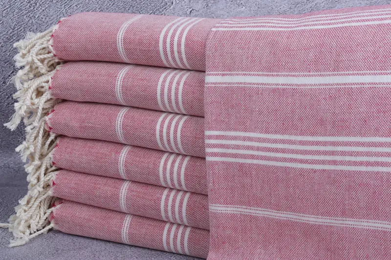 Birinci sınıf Türk pamuğundan üretilen bu havlular olağanüstü emicilik sergileyerek etkili nem emilimi sağlar. Çok yönlü el dokuma tekniğiyle karakterize edilen her parça, 5 santimetreye kadar toleransla 40x71 inç veya 100x180 santimetre boyutlarındadır. Yaklaşık 300 gram ağırlığındaki bu havlular hafifliğini korurken dayanıklılık da sunuyor.