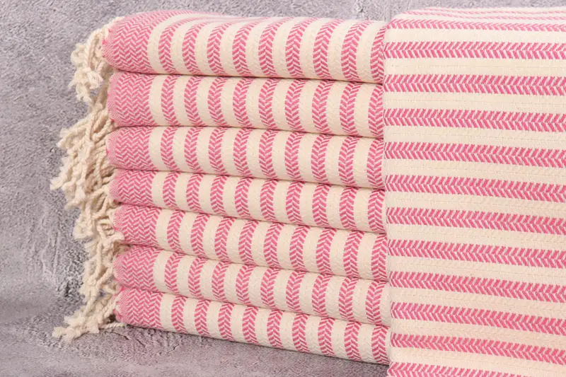 Türk havluları, gelişmiş emicilik ve dayanıklılık sağlayan organik Türk pamuğu bileşimi ile karakterize edilir. Her yıkamada daha da yumuşayan bir ürün ortaya çıkaran bu ürün, makinede veya elde önerilen hassas yıkama işlemine sahiptir. Havlular 40x71 inç veya 100x180 santimetre boyutlarında, 440 gram ağırlığında, el dokuma tekniklerinden dolayı 2 inç veya 5 santimetreye kadar toleranslıdır.