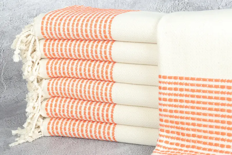 Çift taraflı kullanımı ve çok yönlülüğü ile öne çıkan Türk havluları, üstün emicilik ve yumuşaklık sağlayan organik Türk pamuğundan üretilmektedir. Her bir havlu 36x69 inç veya 90x175 santimetre ölçülerinde, ağırlığı ise 460 gram olup, el dokuma tekniklerinden dolayı 2 inç veya 5 santimetreye kadar farklılık gösterebilir. Kişiselleştirme seçenekleri arasında kişisel dokunuşlara yönelik nakışlar ve anında kullanıma sunulan önceden küçültülmüş havlular yer alıyor. 50 USD'nin üzerindeki siparişler ücretsiz gönderim alır ve kişiselleştirilmemiş ürü...
