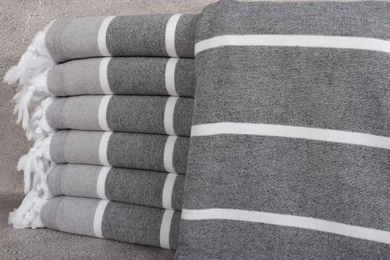 Çevre dostu birinci sınıf Türk pamuğu üstün emicilik ve dayanıklılık sağlar. 36x67 inç veya 90x170 santimetre ölçülerinde ve 2 inç veya 5 santimetreye kadar toleransla üretilen Türk havlusu 400 gram ağırlığındadır. El dokuması boyutlarda küçük farklılıklara neden olur.