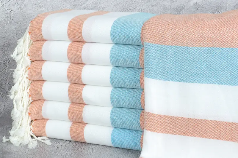 Türk Havlusu Turuncu-Turkuaz Çizgili, 40x71 İnç, Organik Pamuk