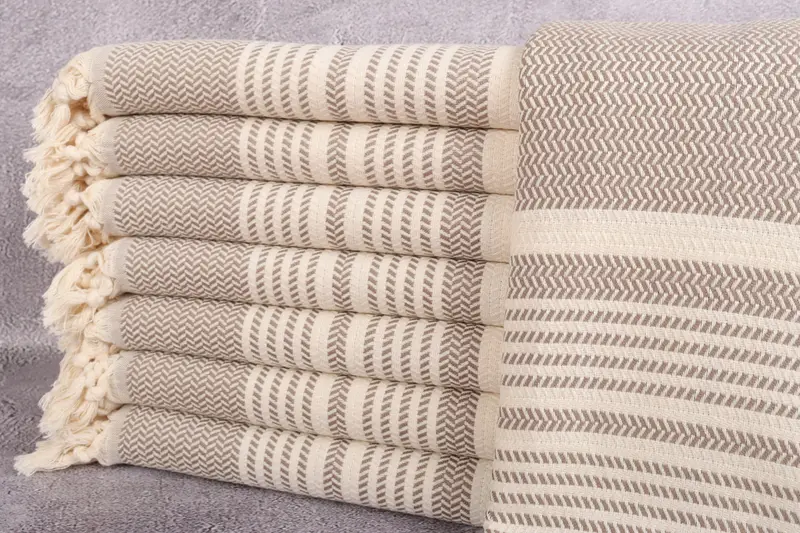 Türk Plaj Havlusu, Çizgili Bej, Çevre Dostu Pamuk, 40x71 İnç