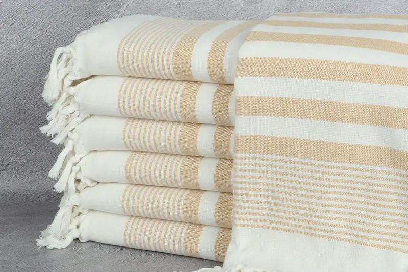 Kişiye Özel Hardal Çizgili Havlu Plaj Eşarp, 40x67 İnç