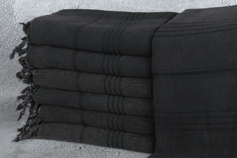 Özel Türk Havlusu Siyah Çizgili Taşlanmış 36x63 İnç
