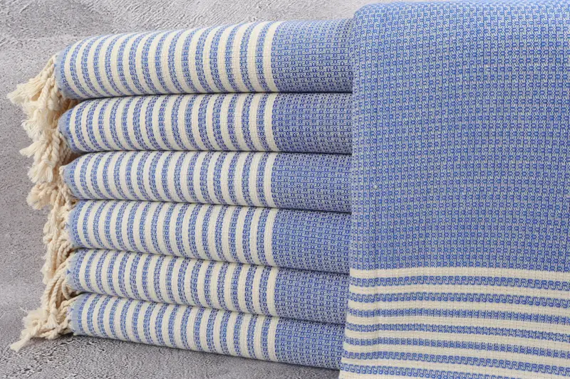 Plaj Havlusu Çizgili Mavi, Organik Türk Pamuğu, 40x67 İnç