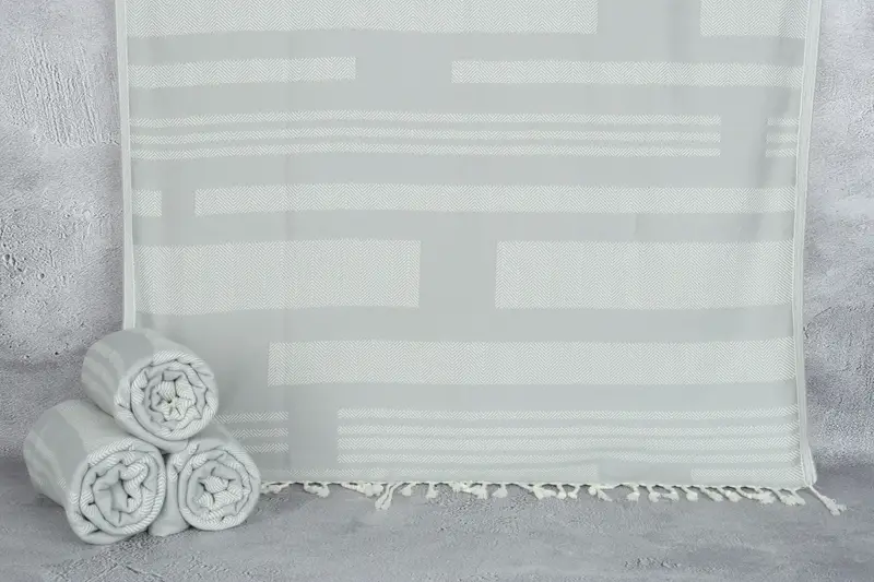Türk Havlusu Kişiye Özel Açık Gri Chevron, 38x67 İnç
