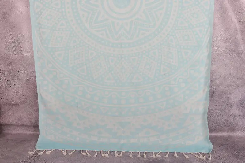 Organik Plaj Havlusu Desenli Monogramlı Nane Peştemal, 40x71 İnç