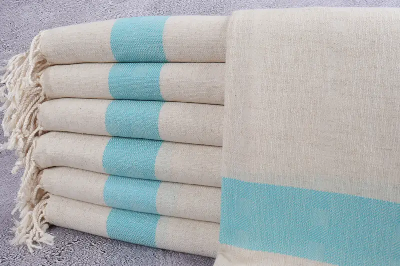 Organik Plaj Havlusu, Turkuaz, 36x71 İnç, Keten, Çizgili