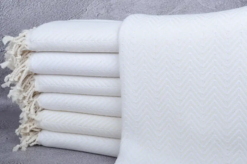 Kişiye Özel Organik Türk Pamuğu Chevron Havlu, Beyaz, 40x71 İnç
