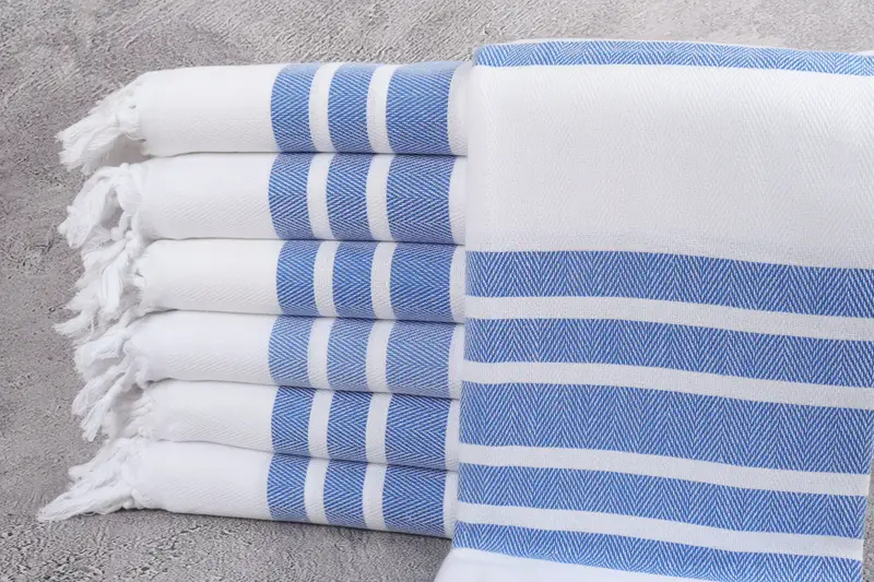 Kişiye Özel Organik Plaj Havlusu Saks Mavi Şerit, 40x71 İnç