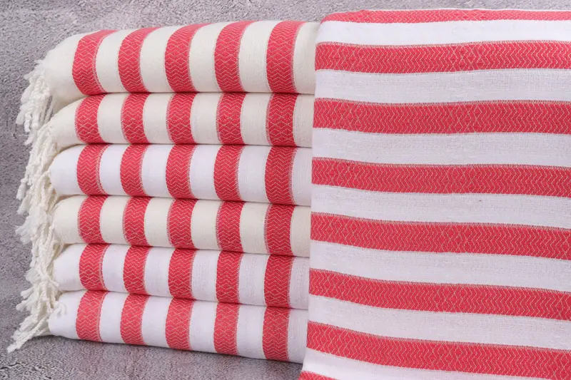 Banyo Havlusu Organik Çizgili Vermilyon Peştemal, 36x71 İnç
