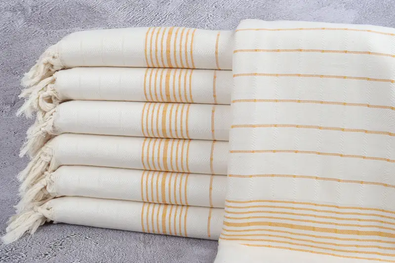 Organik Pamuk Havlu, Hardal Çizgili Peştemal, 40x71 İnç