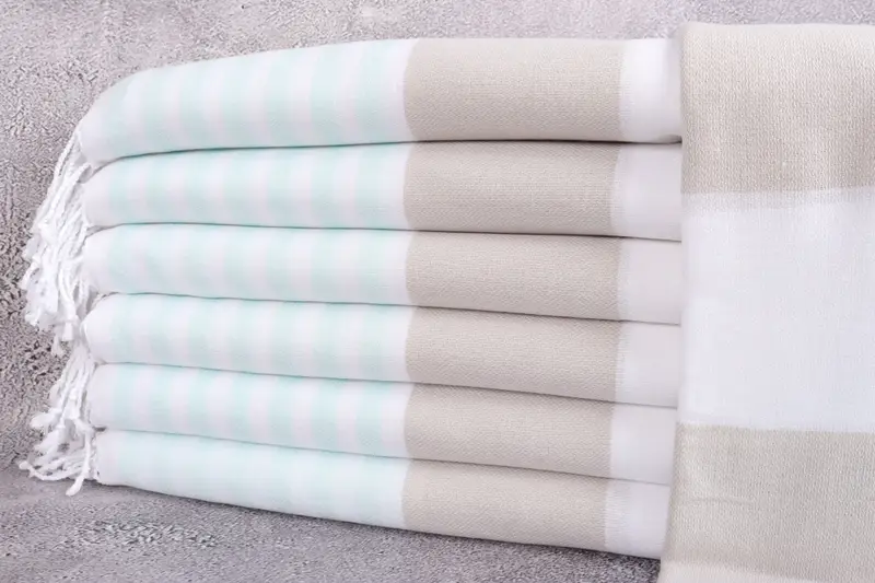 Kişiye Özel Türk Havlusu Organik Bej Çizgili, 40x71 İnç