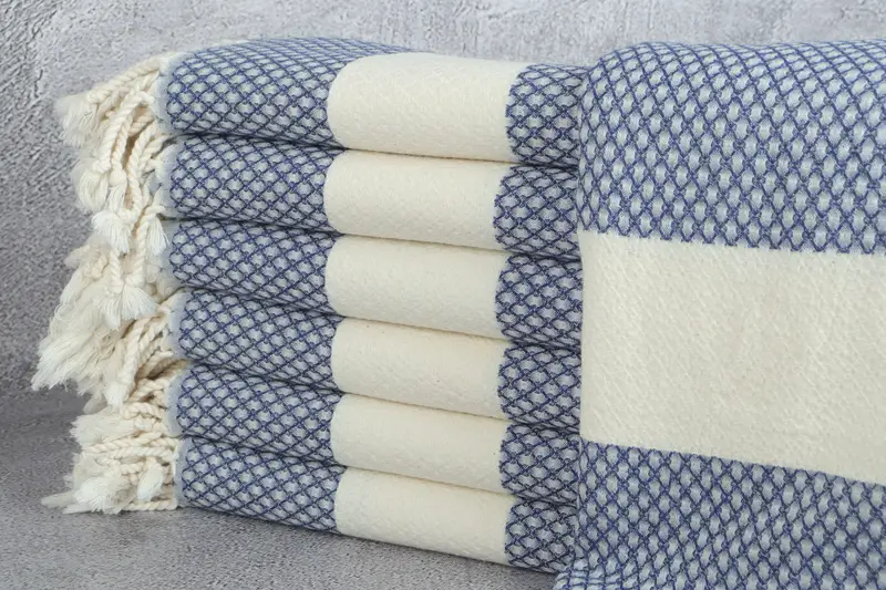 Özel Türk Havlusu Lacivert Chevron, 36x67 İnç, Organik Pamuk