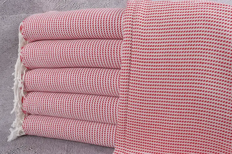 Banyo Havlusu Türk Pamuğu Kırmızı Chevron, 40x67 İnç